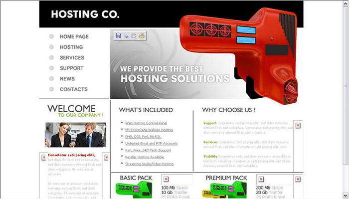 Virtual hosting service provider web page templates