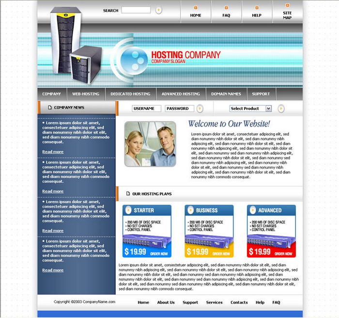 Host, server-type blue website template