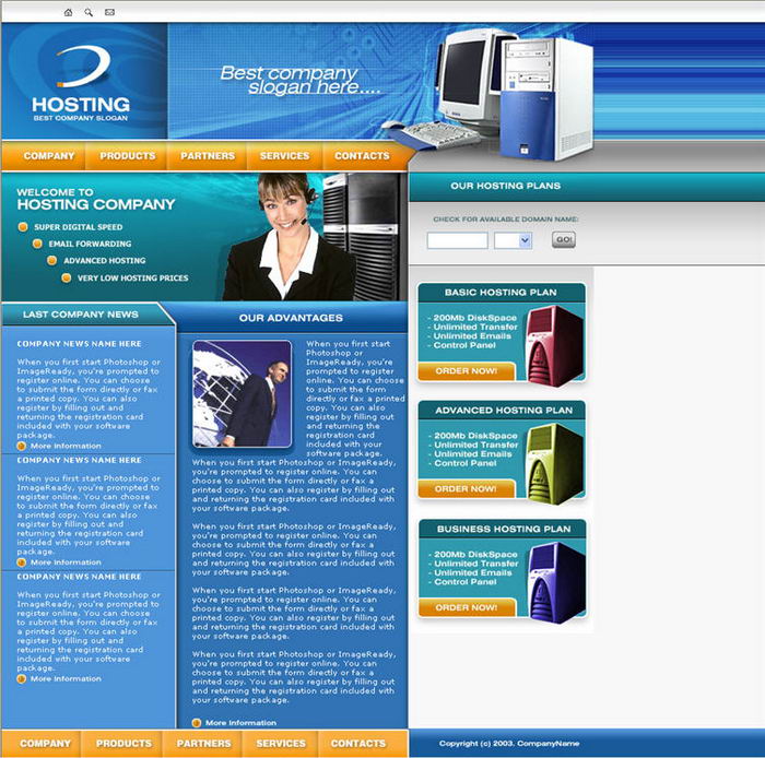 Hosting, space rental, server site template
