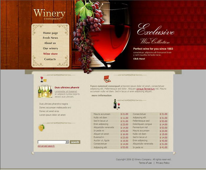 Wine company website template